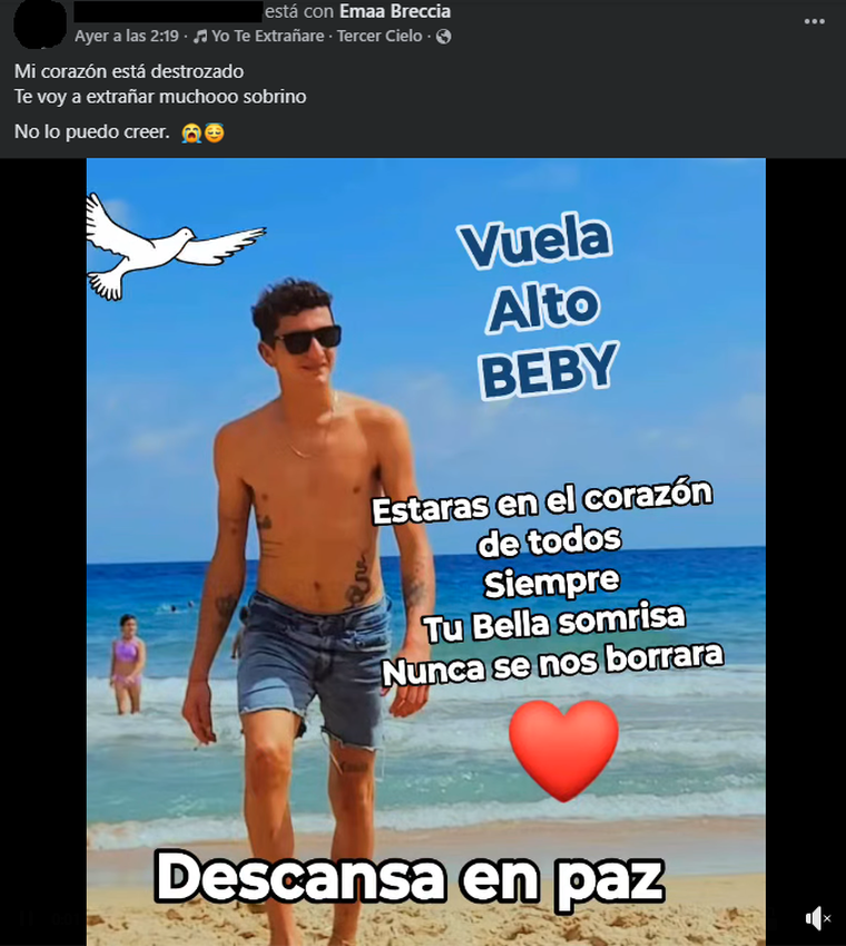 Otra familiar de la víctima subió una imagen del joven, junto a la leyenda "Estarás en el corazón de todos siempre. Tu bella sonrisa nunca se nos borrará".