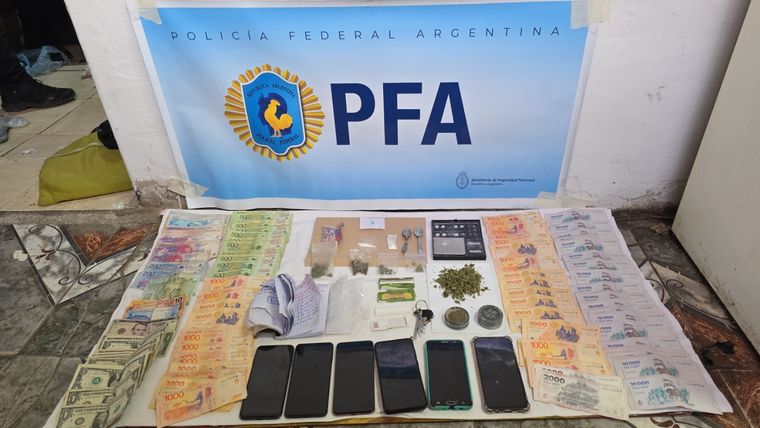 En los procedimientos se incautaron alrededor de seis kilos de cogollos de cannabis, 329 dosis de cocaína, pastillas de éxtasis y MDMA, además de picadores de marihuana, once celulares y documentación vinculada a la causa.