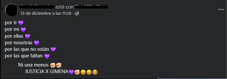 En otras publicaciones, mas amigas de Gómez pidieron justicia bajo el lema "ni una menos", y lamentaron la situación de los hijos de la fallecida.
