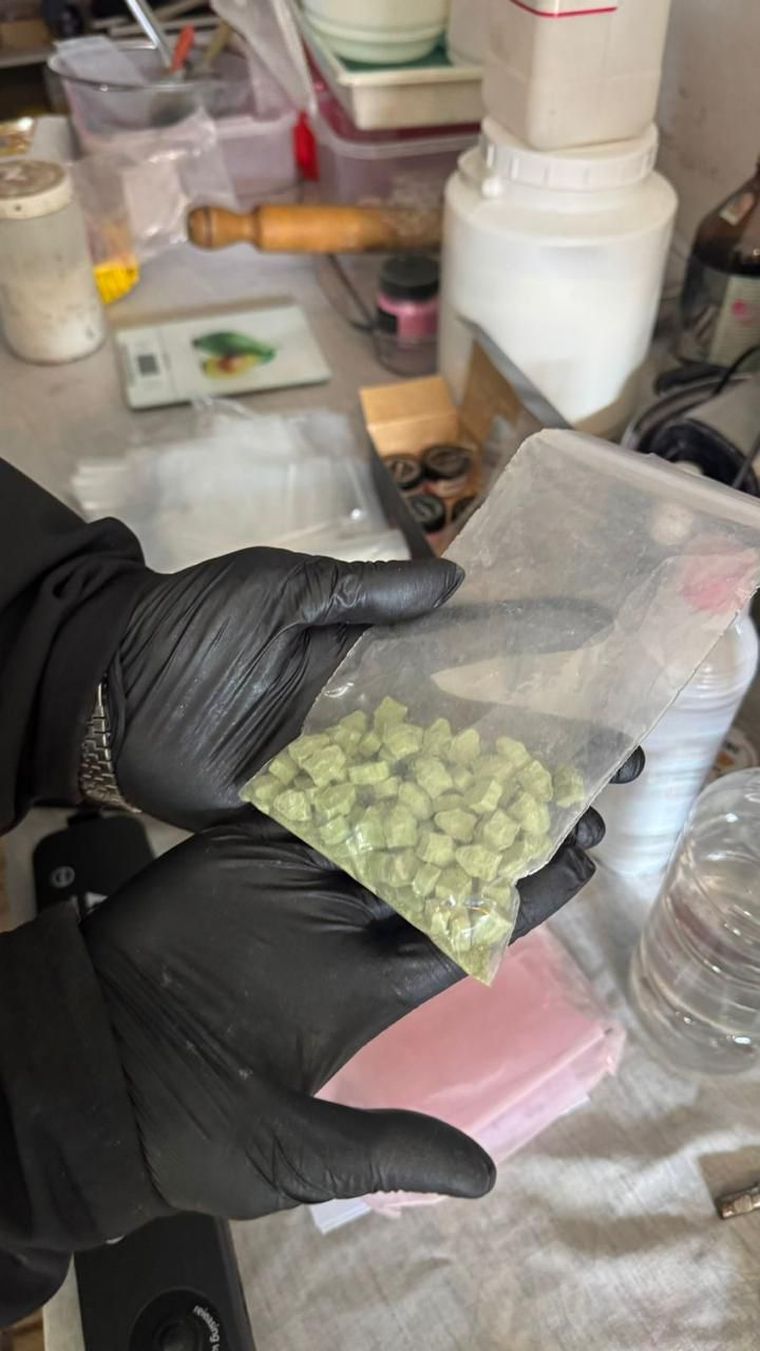 En la vivienda, un grupo de uniformados encontró un laboratorio clandestino equipado con maquinaria, precursores químicos, sustancias no identificadas y drogas ya elaboradas.