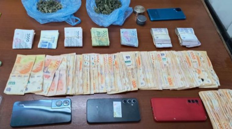 En una de las viviendas allanadas, los uniformados secuestraron cogollos de cannabis, envoltorios listos para la venta, un celular Samsung y $421.800 en efectivo. Allí fue identificada una mujer de 39 años, presuntamente vinculada a la actividad ilegal.