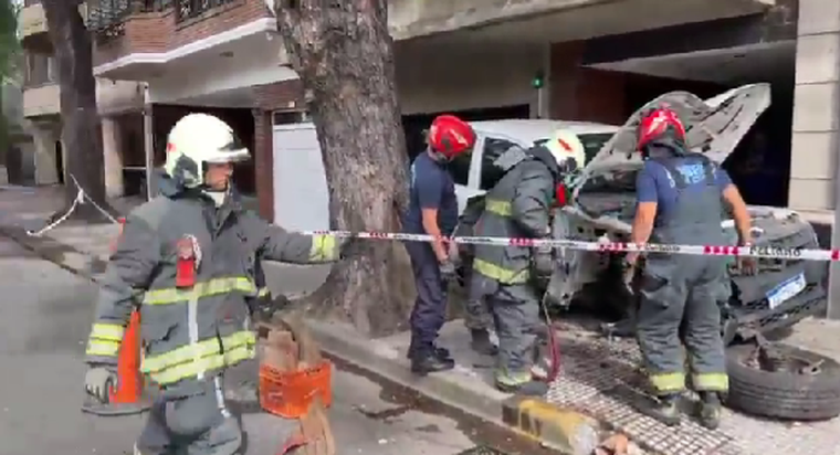 El siniestro ocurrió en el cruce de Avenida Figueroa Alcorta y Sucre. Allí, un auto color gris impactó violentamente contra una grúa. Producto del impacto, la parte delantera del vehículo quedó destruida y el conductor quedó atrapado.
