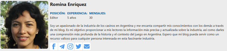 Se trata de Romina Enríquez (42), quien se muestra en en el blog CasinoTopsOnline como una “apasionada de la industria de los casinos en Argentina”. Según trascendió, desde hace más de cinco años, Enríquez escribe artículos sobre la industria de los casinos y cómo ganar dinero con las apuestas virtuales.