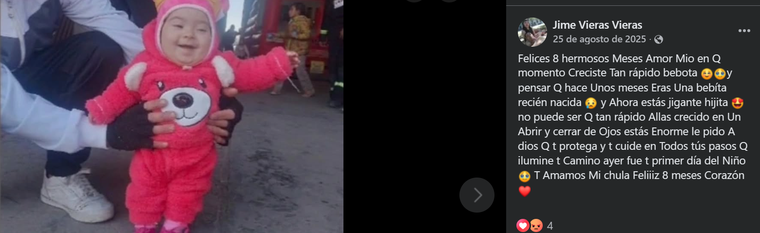 Por otro lado, posteos de la mujer detenida por el crimen de su hija fueron reflotados por personas indignadas por el caso. Concretamente, se trata de dos publicaciones, en las que Vieras celebraba, primero los 8 meses y luego el primer cumpleaños de la beba.