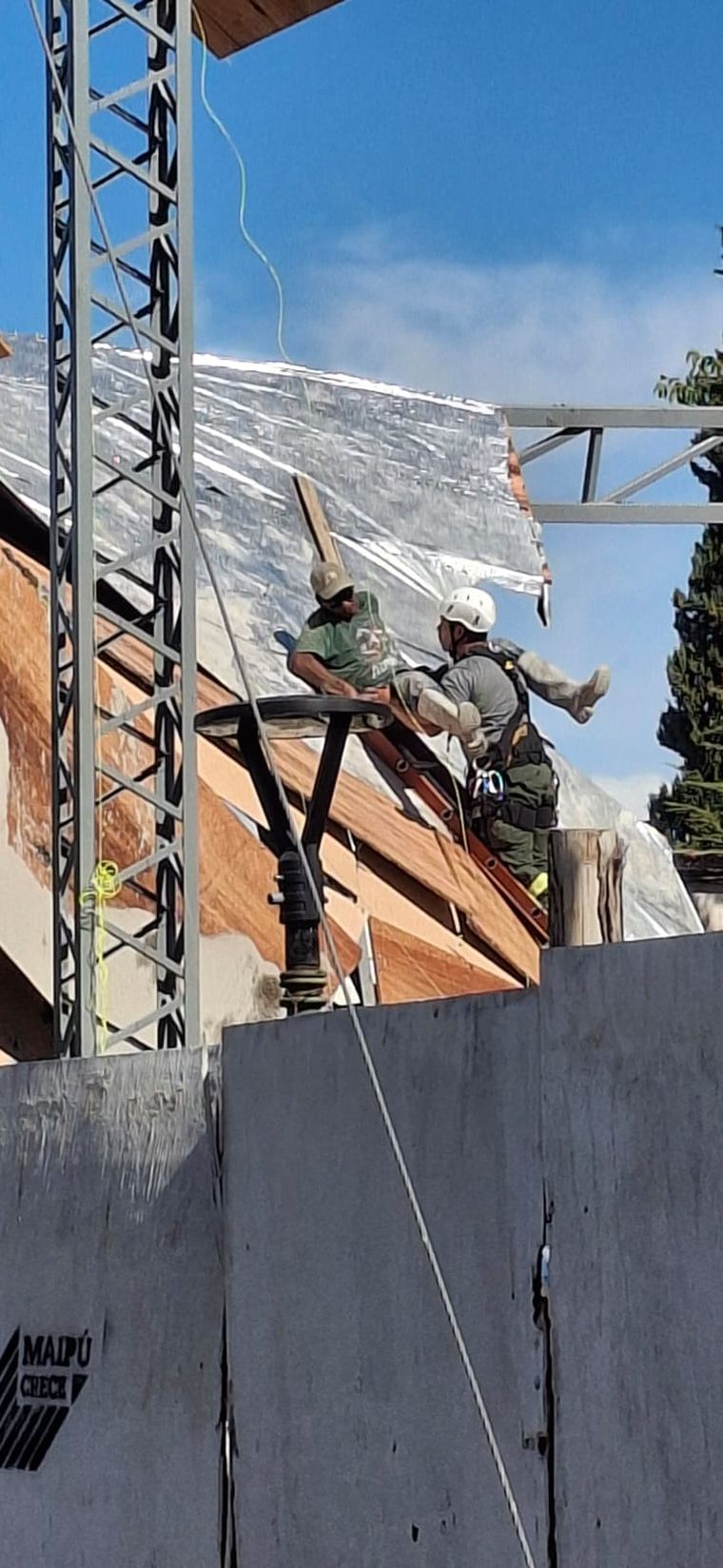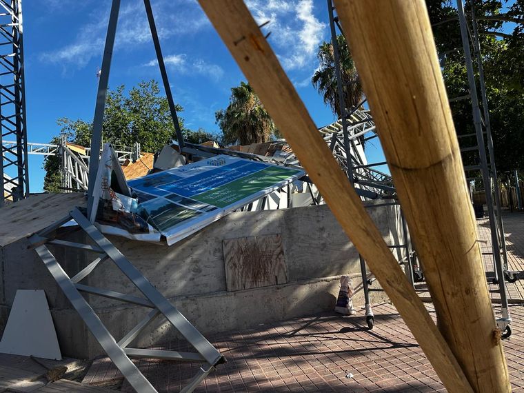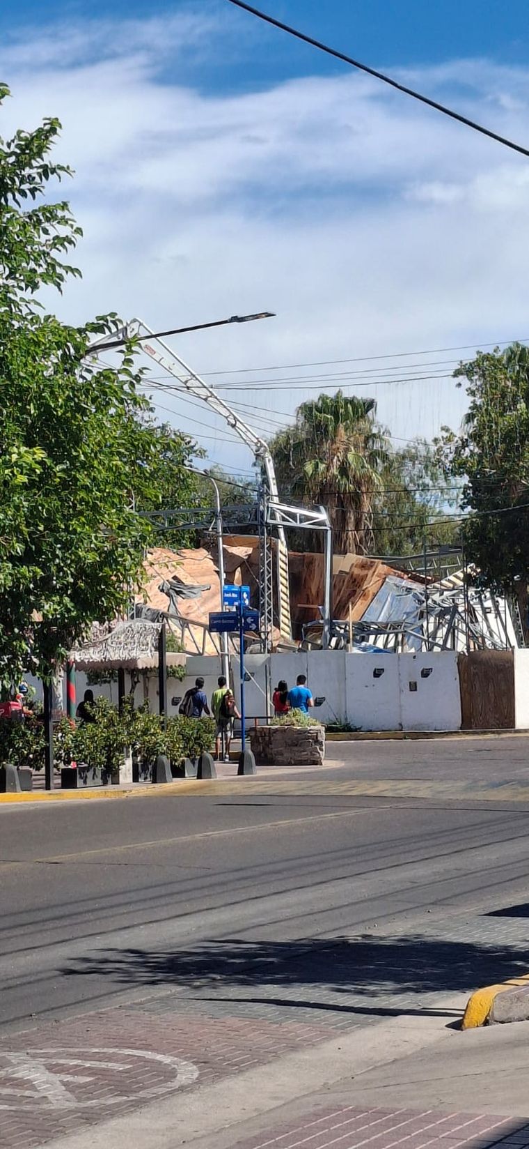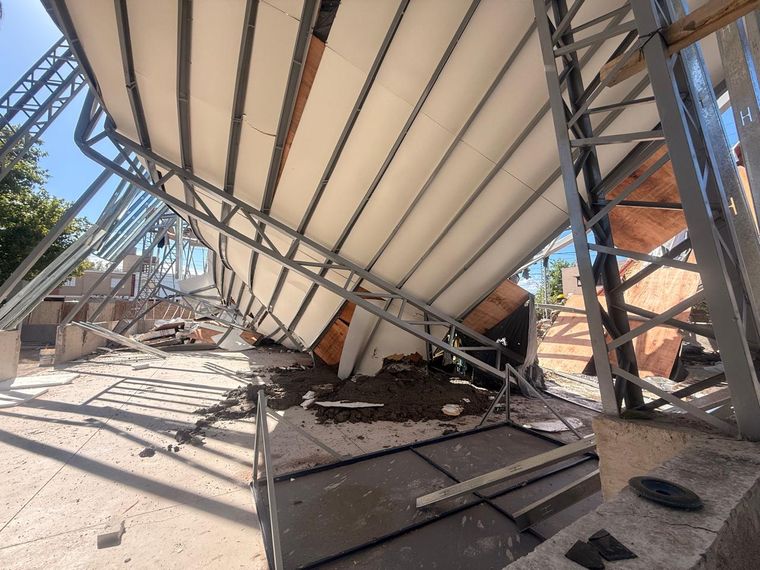 El incidente se produjo este lunes cerca de las 16.43 en el polideportivo ubicado en la intersección de calle Maza y Adriano Gómez. Allí se construye un salón de usos múltiples encargado por el municipio y fue la estructura del mismo la cayó.