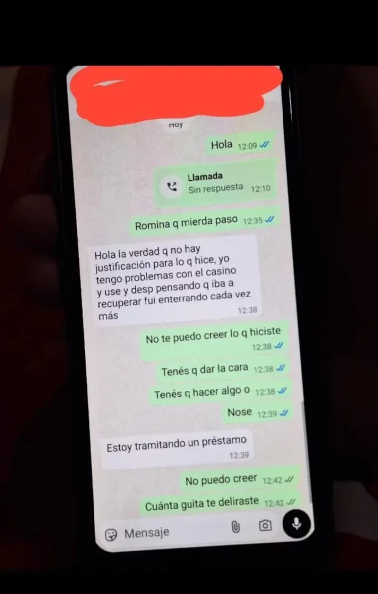 Se trata de Romina Enríquez, quien reconoció por medio de un chat de WhatsApp haber gastado toda la plata en el casino.