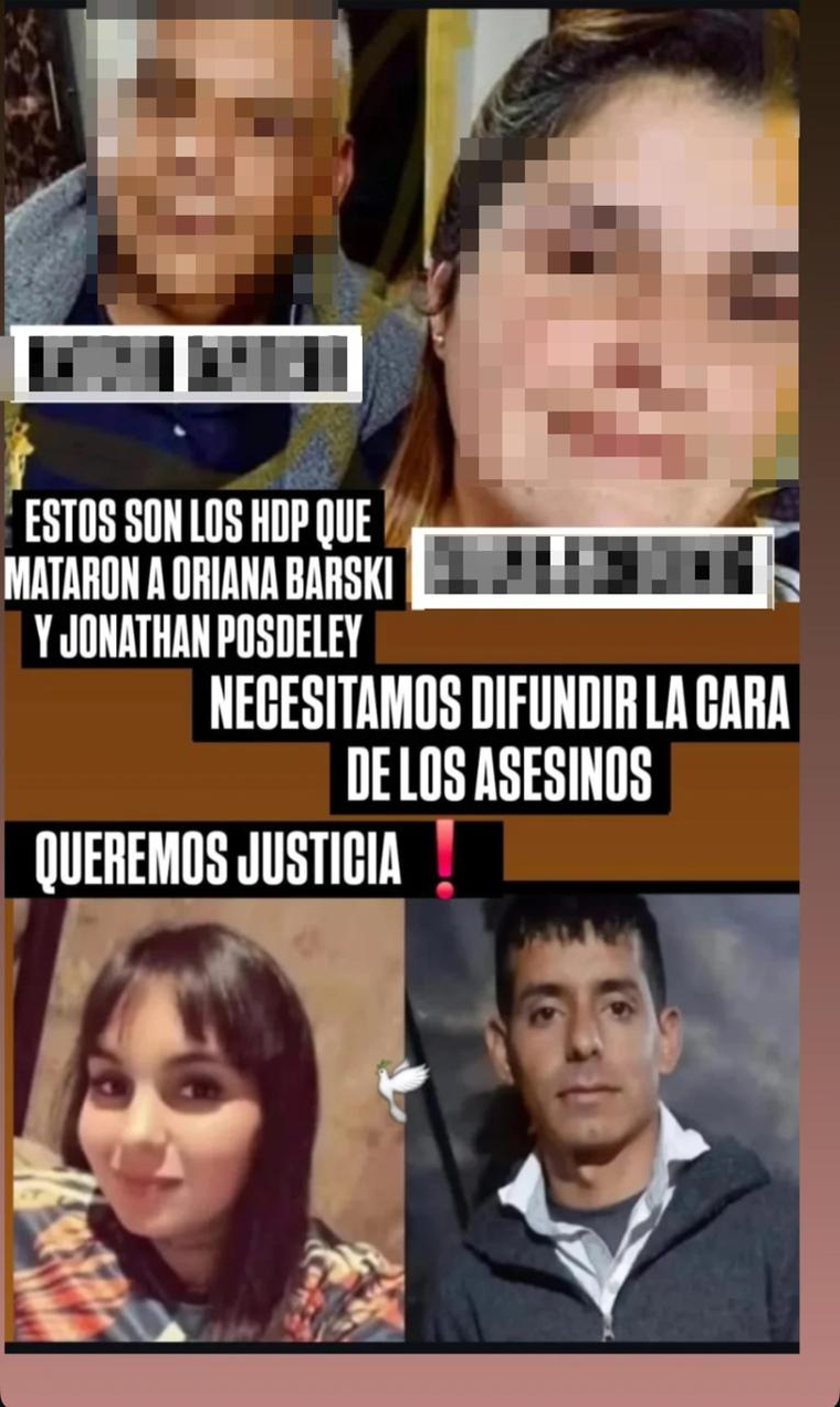 Sobre ambos, un posteo más adelante marcó que los fallecidos "no se merecían todo esto, así les arrebataron la vida como si no valieran nada".