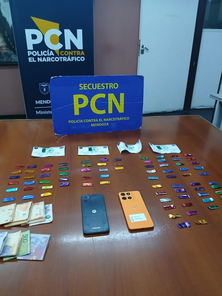 Durante el procedimiento, el personal policial incautó 82 envoltorios de papel glasé que contenían 42,3 gramos de cocaína, además de $34.600 en efectivo y dos teléfonos celulares Motorola, elementos vinculados a la actividad ilícita.