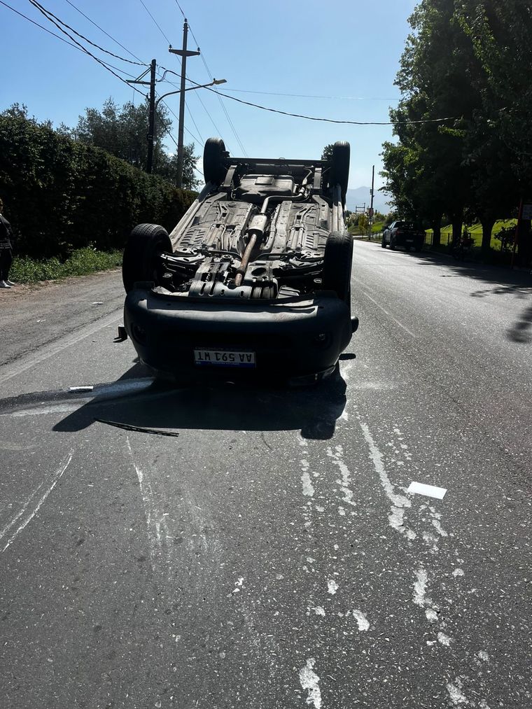 Un aparatoso accidente terminó con un vehículo volcado y dos personas heridas