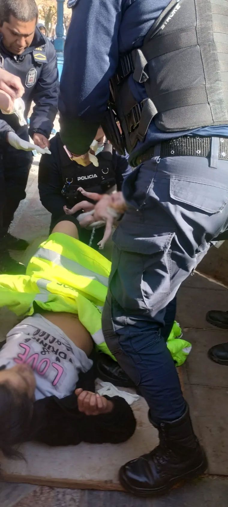 Una mujer dio a luz en plena plaza Independencia, asistida por policías