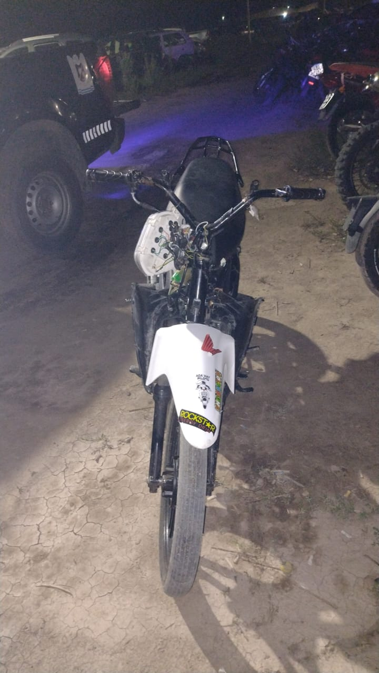 Sin embargo, los uniformados pudieron secuestrar la motocicleta en la que se desplazaban, una Honda modelo Wave color blanco, la que presentaba modificaciones en distintas partes. Tenía los números de identificación de cuadro y motor limados, complicando la identificación del rodado, y le faltaba el dominio y carenado.