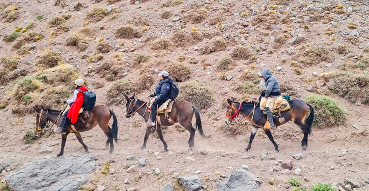 Tras superar el sector conocido como Colombia, una antigua construcción de ladrillos que marca el tramo final, comenzó la subida por la Cuesta Amarilla. Esa última parte del recorrido anticipa la llegada a Plaza de Mulas, donde se concentran la base del refugio, los servicios logísticos y el destacamento policial ubicado a 4.370 metros de altura.