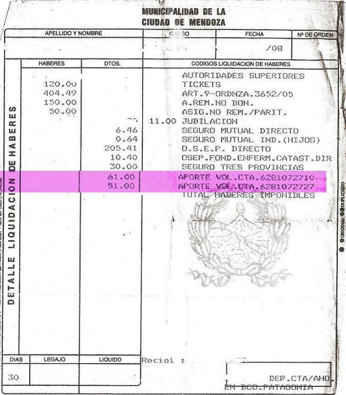 Esta suerte de donación no es nueva. Hay empleados municipales que exhibieron bonos del año 1991 –durante la primera intendencia de Fayad-, en los cuales ya aparece esa quita salarial.