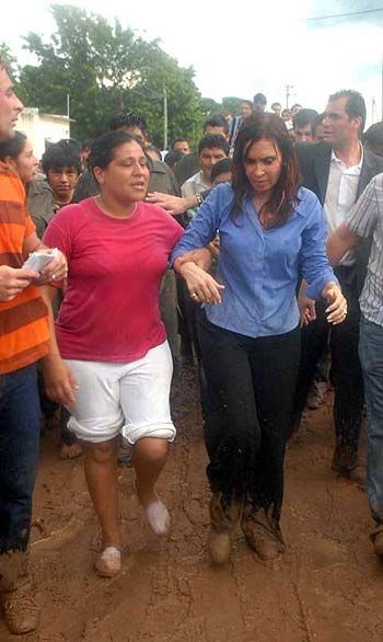 La tragedia que sufren los vecinos de Tartagal fue una cachetada para la presidenta Cristina Fernández de Kirchner. Recién llegada de España y aun, conmovida por el protocolo real y tras lucir, uno tras otro, los mejores trajes y alhajas, se calzó zapatillas y pantalones y se metió en el barro que todo lo tiñe en la zona de desastre salteña.