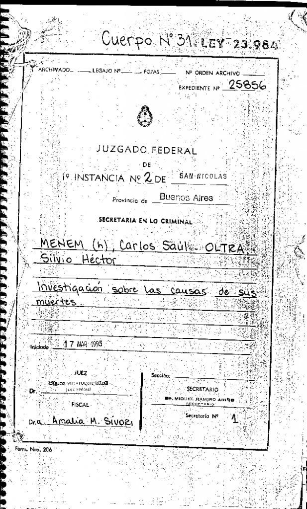 -Rodolfo Cortese: Fue quien le acercó el cassette a Zulema Yoma donde se escuchan los gritos de Carlos Menem Junior antes de impactar contra el maizal. Cortese falleció de manera extraña y fue inmediatamente cremado sin autorización de su familia.