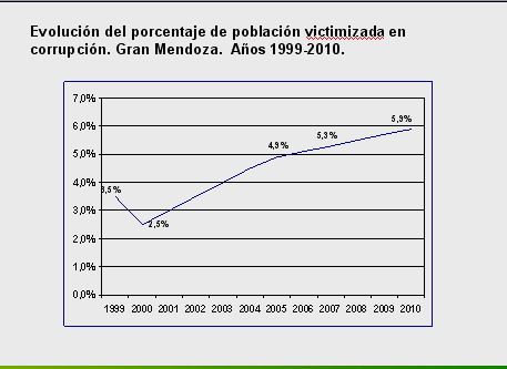 La baja queda sintetizada en una curva comparativa descendente de los últimos 11 años, que revela un porcentaje de población victimizada del 50,7 por ciento en 1999 y del 29,2 por ciento en 2010.