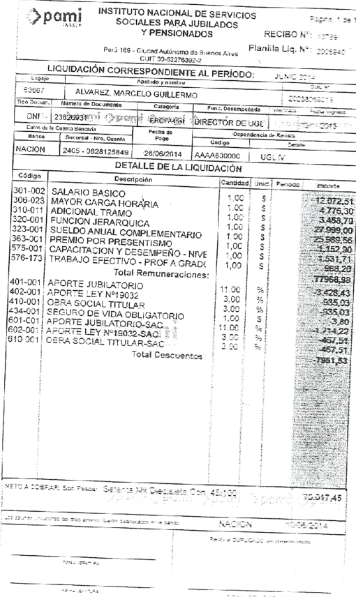 En el PAMI de Mendoza quien fue designado en noviembre de 2013 como el funcionario de mayor jerarquía es el médico Marcelo Álvarez quien hoy fue denunciado por la fundación La Alameda por haber llegado en apenas 6 meses en el cargo a percibir un sueldo de 70 mil pesos.