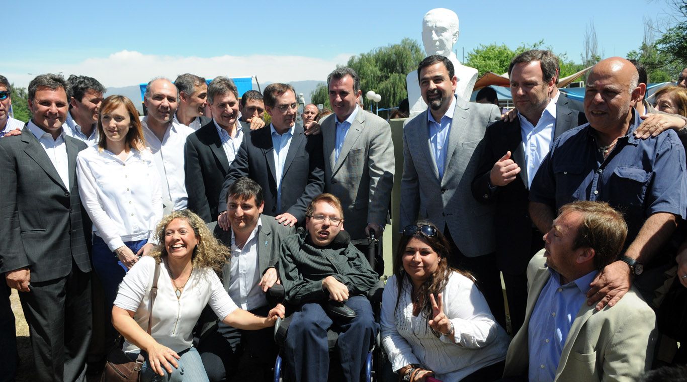 En la tierra que hoy comanda Luis Lobos, el gobernador Francisco Pérez y el vicegobernador Carlos Ciurca hicieron una ofrenda de flores en el busto del General Juan Domingo Perón, ubicado en las inmediaciones del Predio de la Virgen.