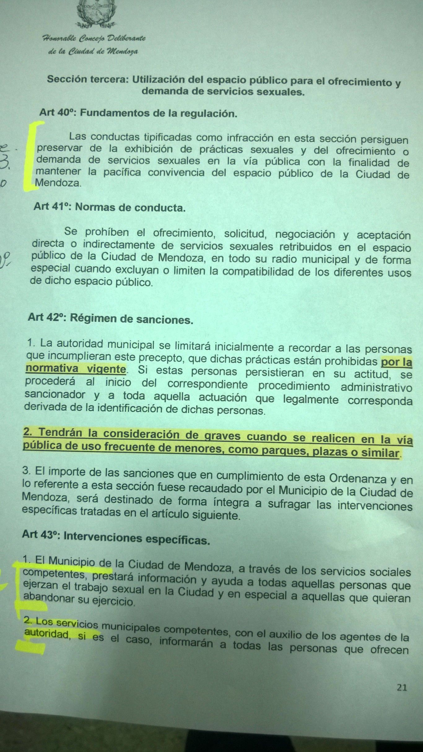 También se reguló el trabajo sexual, de acuerdo con Sayavedra, el objetivo es recuperar secciones como la Cuarta, consideradas zona roja e ir en contra de las mafias que puedan estar explotando a la mujer. Se prohibió la oferta sexual en la vía pública.