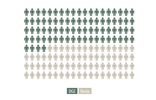 Trabajan en la DGE: 52,9% Resto: 47,1%