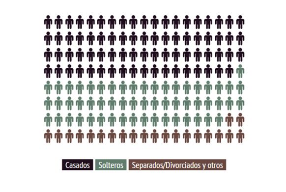 Separados/Divorciados/Uniones de hecho y viudos: 13,8%