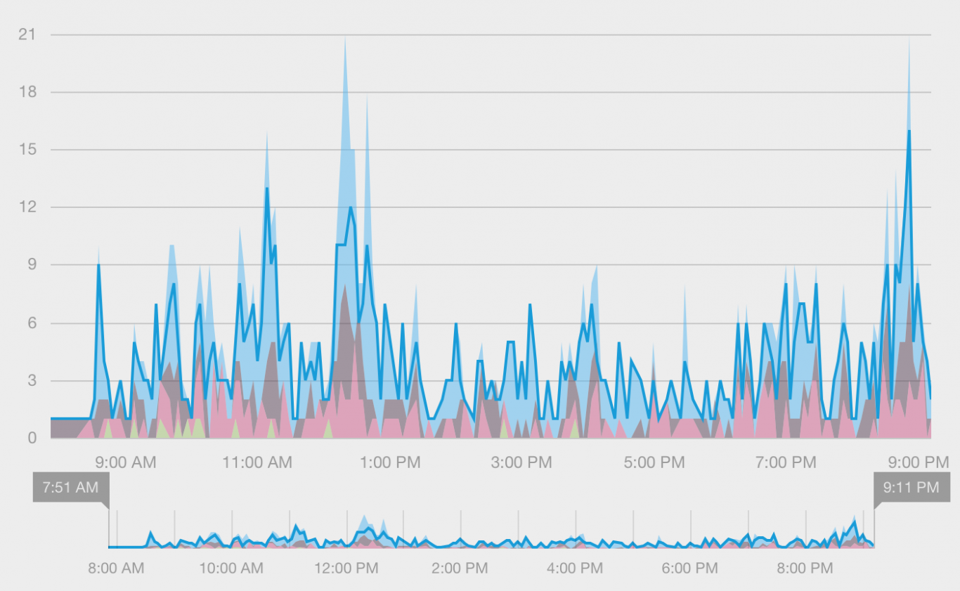 En el gráfico podemos observar que el pico de tweets emitidos en #EleccionesMDZ se observó a las 12:20 pm previo al partido de Los Pumas y a las 20:35 pm cuando se comenzaban a dar resultados de mesas testigos de distintos partidos políticos.