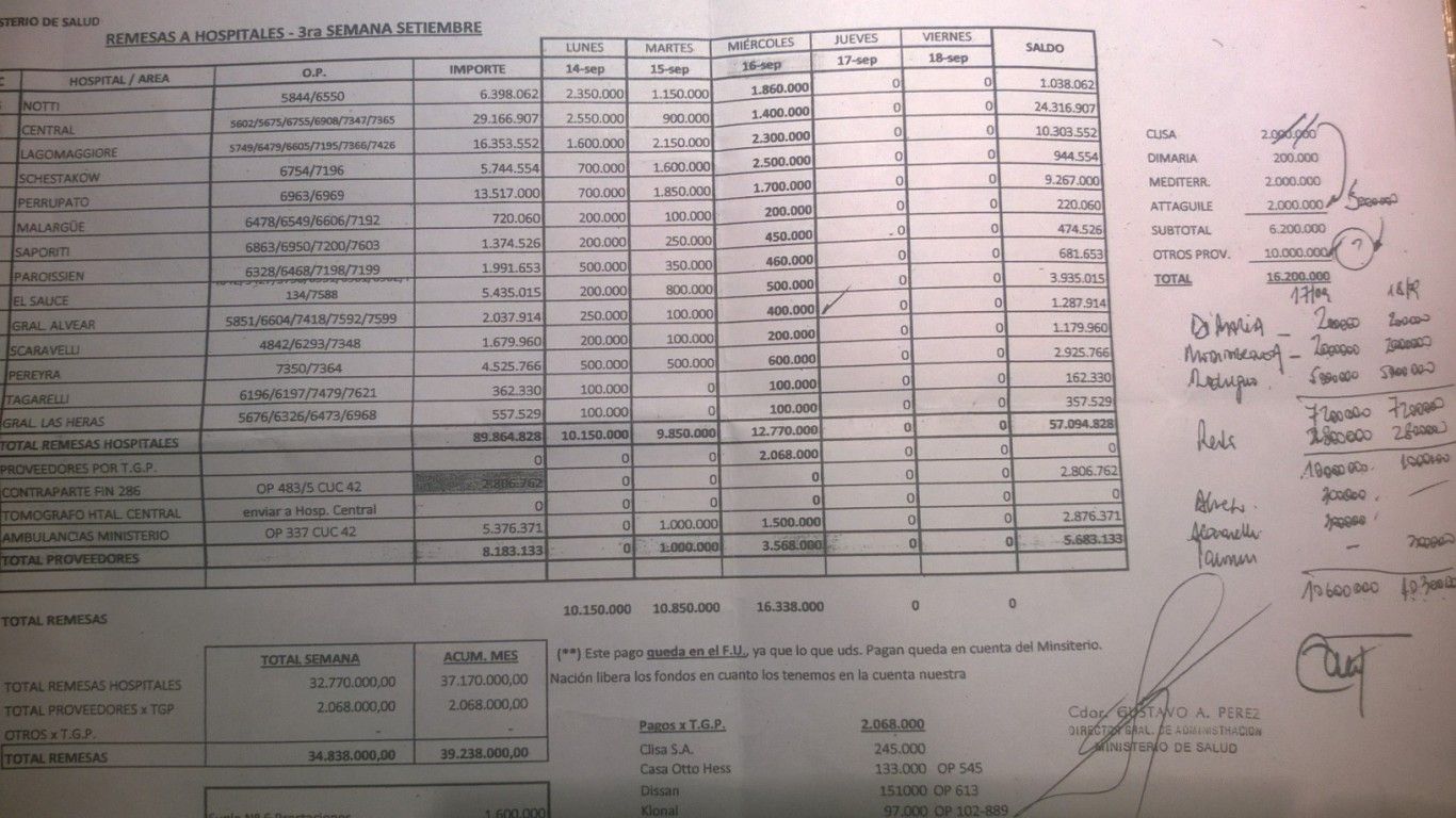 MDZ accedió a la planilla de distribución que se había dispuesto para el pago de las deudas de los hospitales.