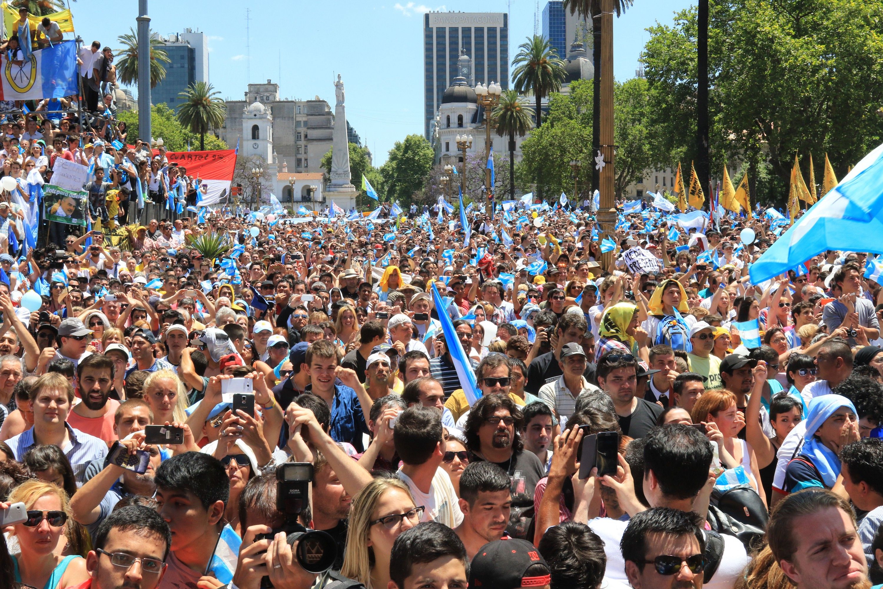 Una multitud aclamó al nuevo presidente en Plaza de Mayo.