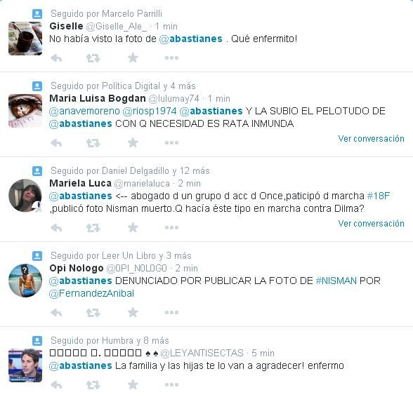 Después de la publicación, los mismos seguidores de Bastianes salieron a cuestionarlo duramente por la crueldad del acto y la falta de respeto hacia la memoria y la familia de Alberto Nisman.
