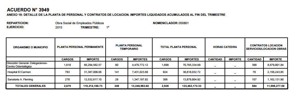 Los números de la OSEP, publicados en su web, al 1º trimestre de 2015: