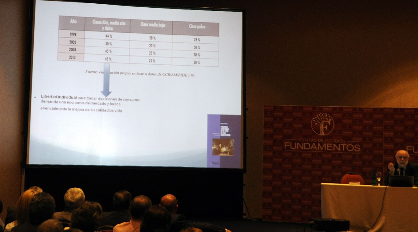El doctor presentó un cuadro para demostrar dichas desigualdades en los que se tomaron en cuenta las fluctuaciones de clases que han ocurrido en Argentina entre 1998 y 2013, en el mismo se evidencia un crecimiento sostenido de la clase media y alta con respecto a 2003, en donde las mismas sufrieron una abrupta caída que contribuyó a que las clases más bajas alcanzaran el 50% de la población total del país.