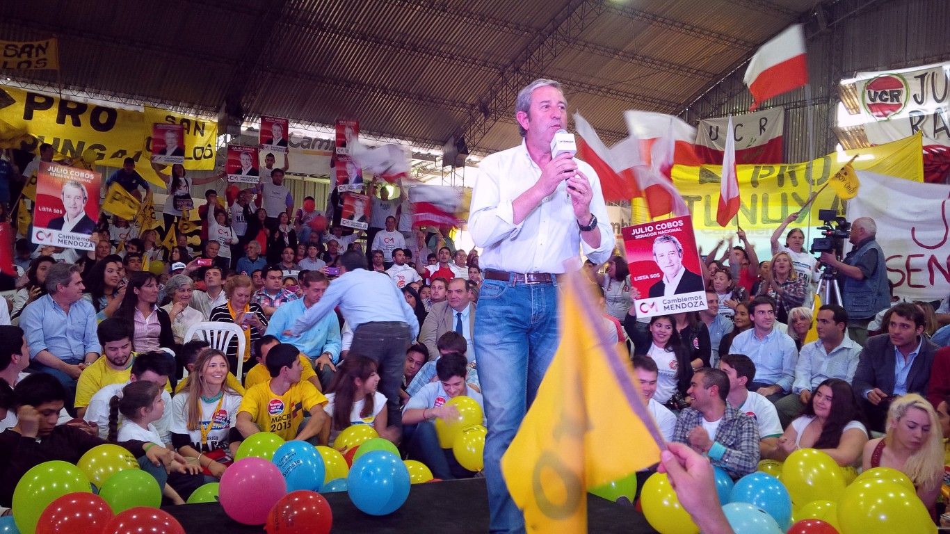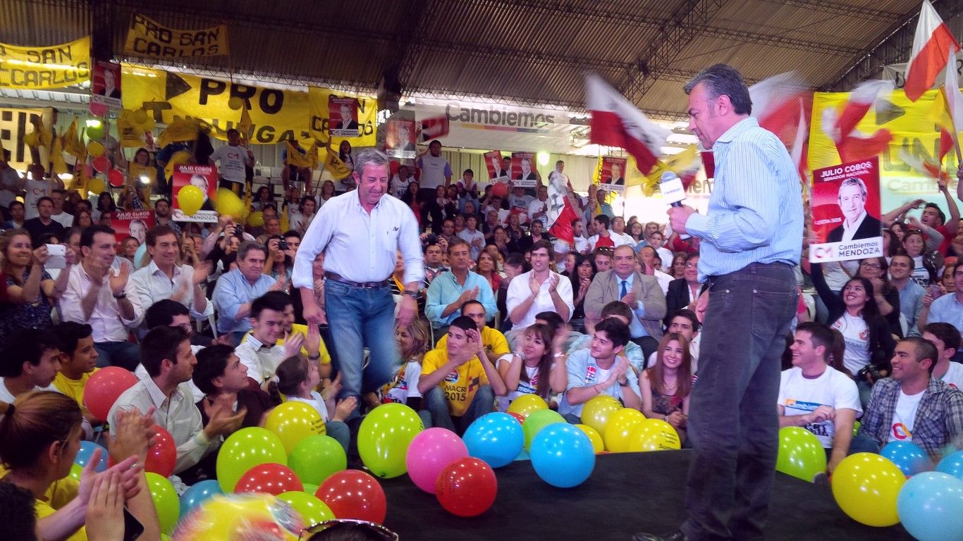 "(Macri) es colega, es ingeniero como yo, y seguro quiere construir una Argentina grande; por eso les pedimos que lo apoyemos", alentó Cobos a la tribuna.
