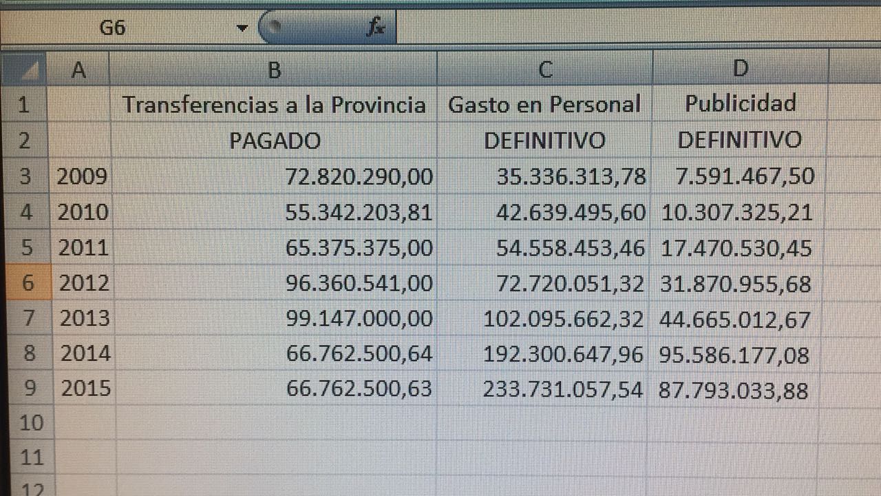 En este sentido, un comparativo elaborado en el IPJyC demuestra una escalada impresionante en el gasto de personal y de publicidad del organismo, entre los años 2009 y 2015. Mientras tanto, las transferencias para la salud eran variables, hasta que se desmoronaron definitivamente en los dos últimos años de gestión peronista, como se puede apreciar abajo.