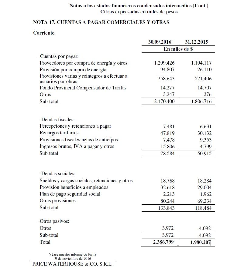 Igualmente la crisis sigue vigente. "Al cierre del período, los pasivos corrientes excedían a los activos corrientes en miles de $ 1.312.427. La Dirección de la Sociedad se encuentra definiendo e implementando un plan de acción para revertir estas circunstancias... Estas circunstancias, junto con otras cuestiones indican la existencia de una incertidumbre significativa que puede generar duda sustancial sobre la capacidad de la entidad para continuar como empresa en funcionamiento", repite el informe de la consultora PWC para Edemsa.