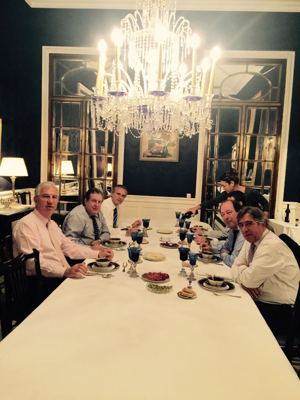Ramón Puerta y Ernesto Sanz, junto al abogado Guillermo Ambroggi (izq), en la cena en la embajada argentina en Madrid. Allí estuvo el ex senador para exponer las ventajas de la PPP ante empresarios españoles.
