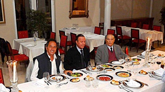 El 15 de diciembre de 2012, en épocas cuando el gobernador Daniel Scioli se dedicaba a colocar más carteles en obras, que a terminar las obras, convocó a Julio Iglesias. Se lee de aquel momento Scioli: "encabezó un acto en La Plata con beneficiarios de planes sociales, gremios e intendentes afines. Volvió a evitar confrontar con Cristina y hasta le agradeció su colaboración con la provincia. Julio Iglesias, Cacho Castaña y La Mosca volvieron a animar la fiesta sciolista". Un plato. 2 de octubre, en el Hermitage de Mar del Plata.