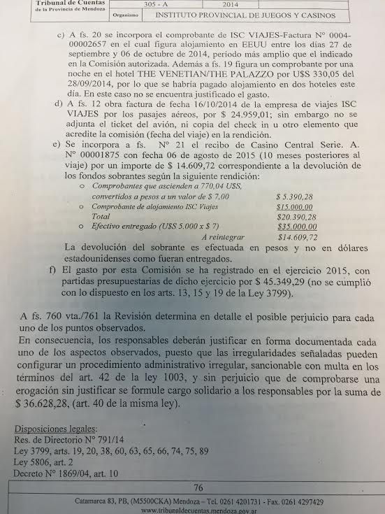 Un contundente informe del Tribunal de Cuentas sobre el Instituto de Juegos y Casinos denunció manejos e irregularidades cometidas por uno de los ex vocales del organismo, Federico Domínguez, en ocasión de un viaje a Estados Unidos.
