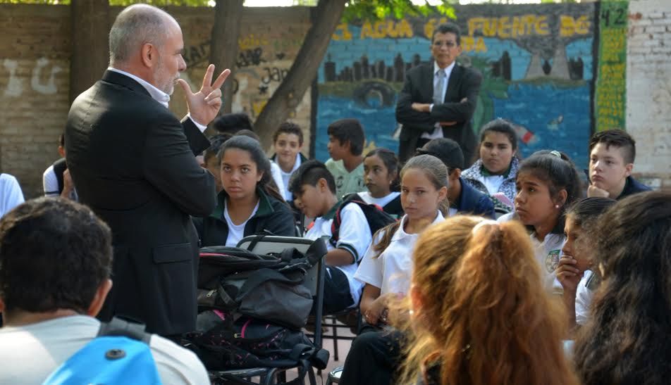 El director General de Escuelas en la escuela Olazábal de Luján de Cuyo.