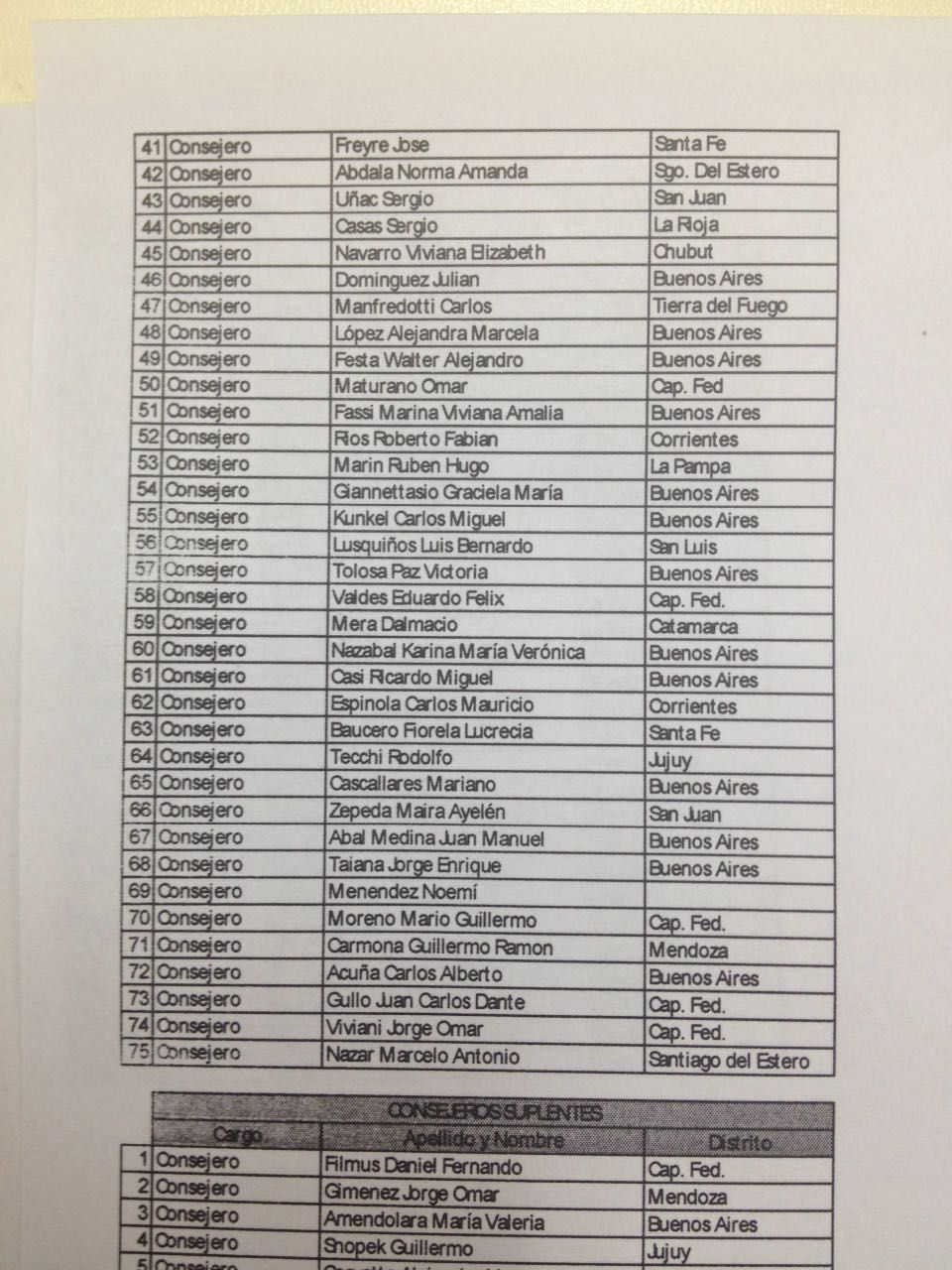 Como segundo consejero suplemente se posicionó Jorge Gimenez, referente del sector azul del peronismo y uno de los pocos intendentes mendocinos que fue reelecto en 2015. Delante de él, encabezando la "segunda nómina", está el kirchnerista Daniel Filmus, actual parlamentario del Mercosur.
