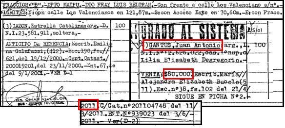 De acuerdo con los registros con los que cuenta la Provincia, el avalúo fiscal de estas tierras es de unos 200 mil pesos, lo que no implica que éste sea el costo real. Según fuentes inmobiliarias consultadas por MDZ, esta propiedad tendría un costo en el mercado de unos 2 millones de pesos, como mínimo. Pero, llamativamente, en los registros de la transacción figura que Gantus la compró en 2011 por apenas 80 mil pesos.