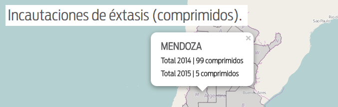 Finalmente, en lo que respecta a éxtasis, droga sintética en boga luego de las muertes en la fiesta Time Warp de Costa Salguero, las cifras de actuación policial resultan irrisorias, teniendo en cuenta su presencia e incidencia real.