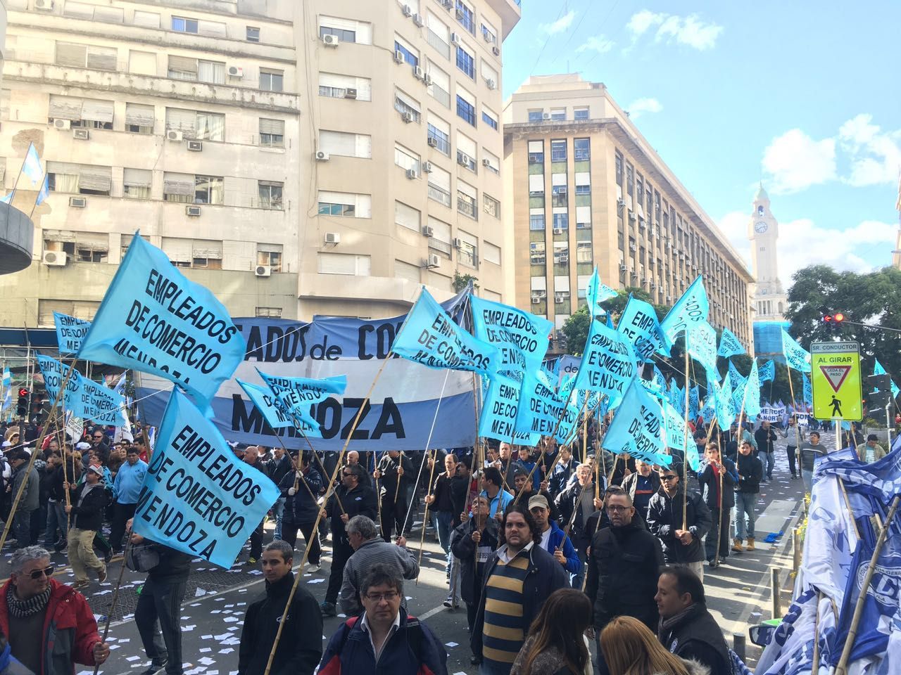 Dirigentes y delegados sindicales mendocinos fueron parte dela multitud que marchó esta tarde en Buenos Aires.