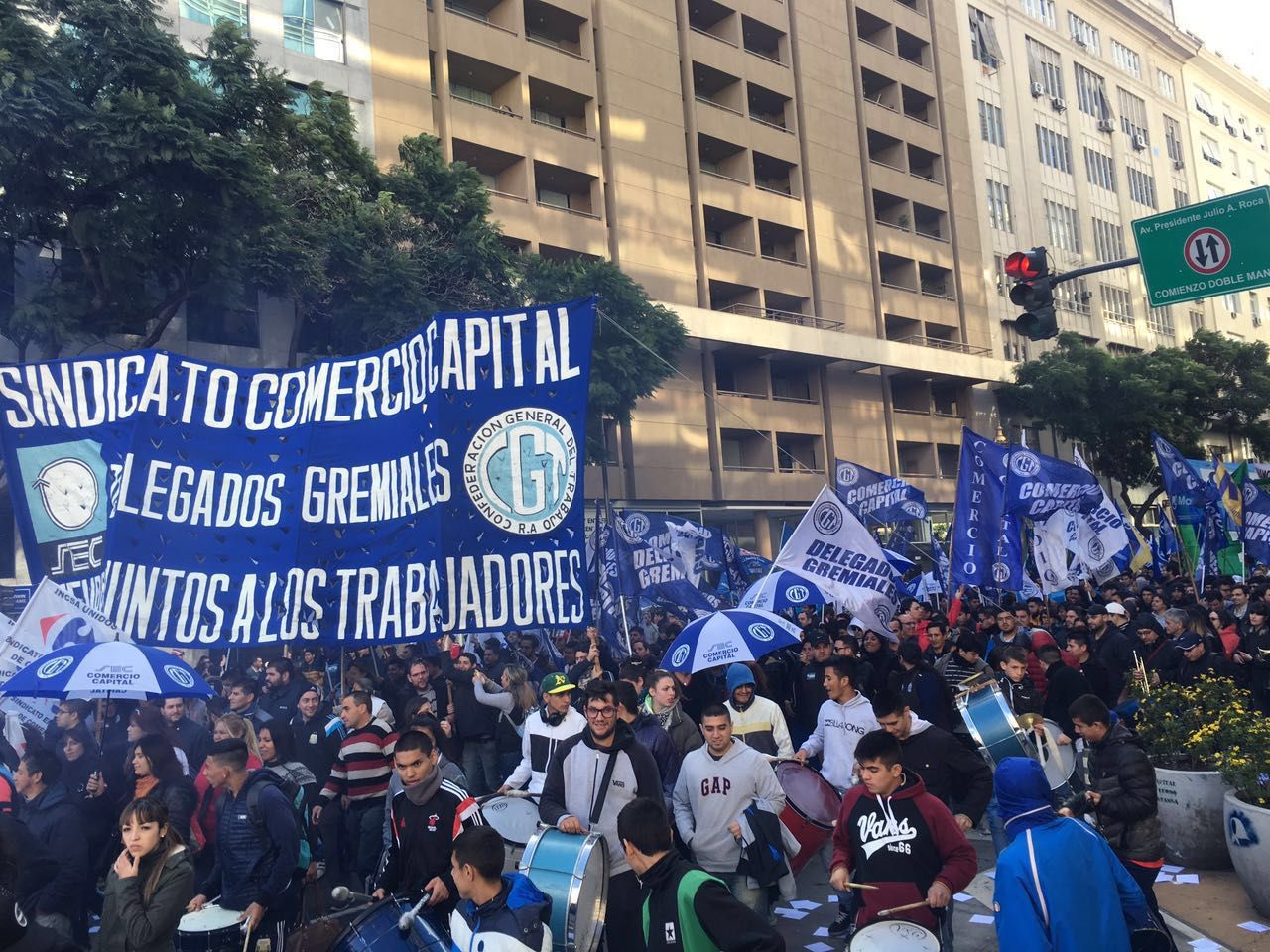 Una extensa columna de dirigentes y delegados del gremio de los empleados de comercio de Mendoza (el CEC) fueron parte -según pudo verse en los diferentes medios de comunicación que dieron cuenta de la movilización- de la marcha realizada en Buenos Aires en los días previos al 1 de mayo y que concentró a referentes de las diferentes centrales obreras.