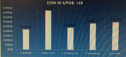 Sin embargo, la casa de juegos de Uspallata no es la de mayor consumo. La supera San Carlos, con un gasto per capita de 4.652,68 pesos por mes.