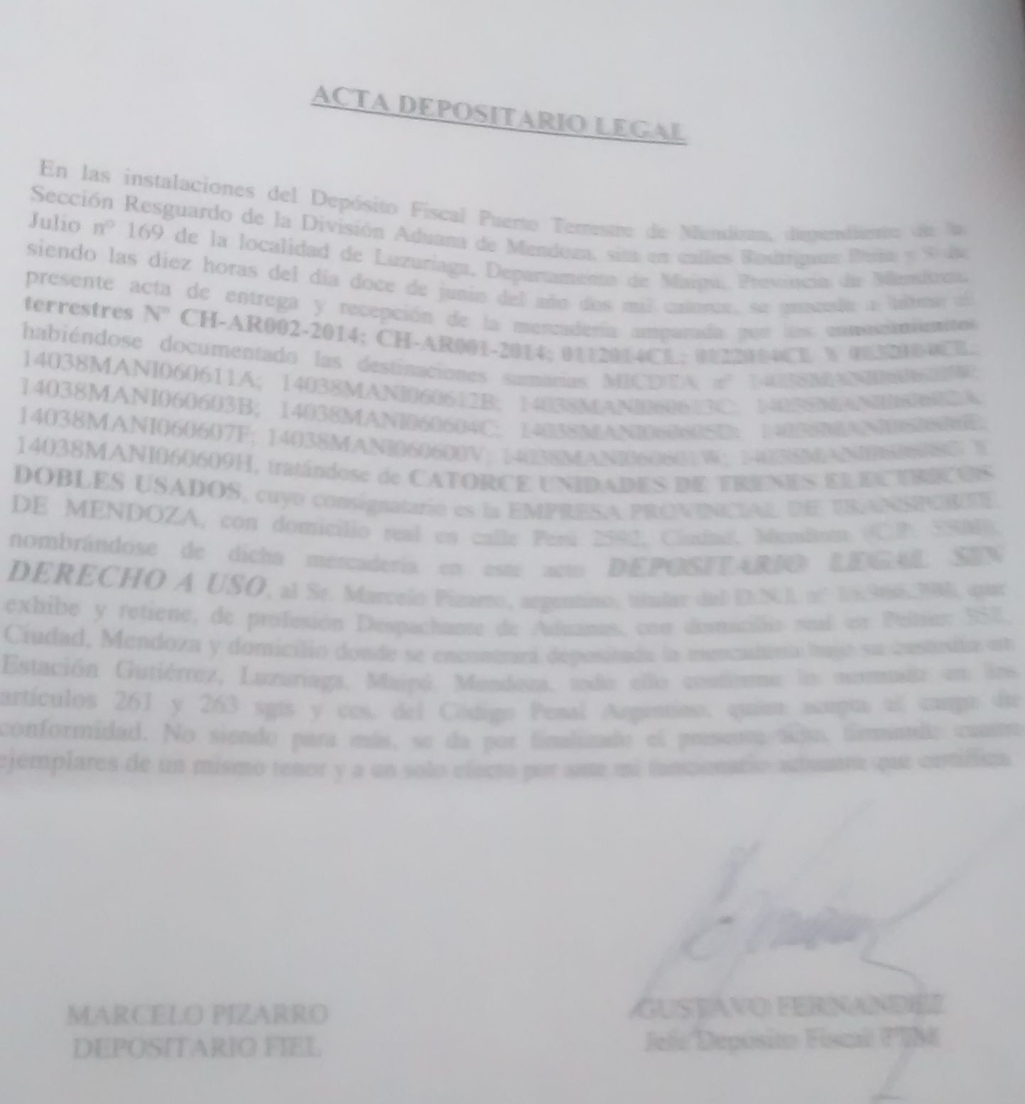 "Los norteamericanos nos dieron un protocolo de mantenimiento de las unidades y mandaron los repuestos necesarios en un container y medio que se encuentra demorado en Puerto Seco. Hay 600.000 dólares en repuestos fundamentales para mantener el buen funcionamiento de las formaciones. El almacenaje ya le debe haber generado a la provincia un costo de más de 30.000 dólares", indicó Pizarro.