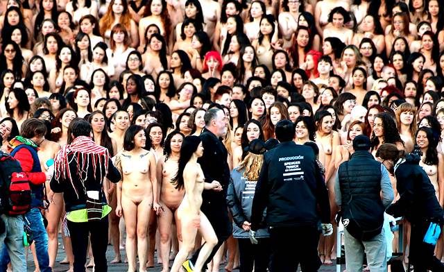 Spencer Tunick ha sabido colocar adrenalina a sus clásicos desnudos urbanos por todo el mundo. A punto tal que esta instalación ha sido la más grande que ha realizado en los últimos seis años. Su propósito era capturar el espíritu optimista de una sociedad que quiere olvidar lo más rápido un conflicto que más que grieta es buraco.
