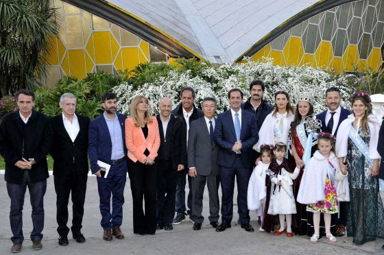 Flor de convivencia en Escobar: Gabriel Katopodis, Jorge Landau, Francisco Etcharren, Verónica Magario, Nicolas Ducoté, Daniel Scioli, Tetsuya Hirose, Ariel Sujarchuk, Leonardo Sarquis y Gustavo Menéndez con reinas de la flor en la fiesta anual en Escobar.
