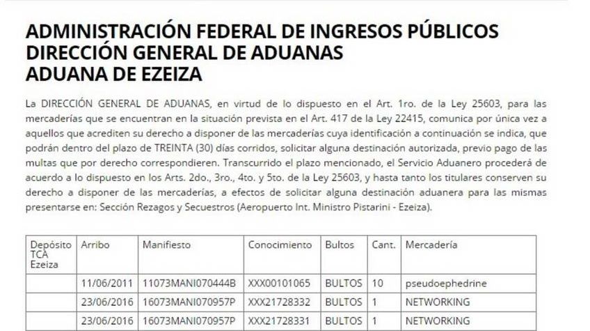 La efedrina de Ezeiza había salido publicada en el Boletín Oficial