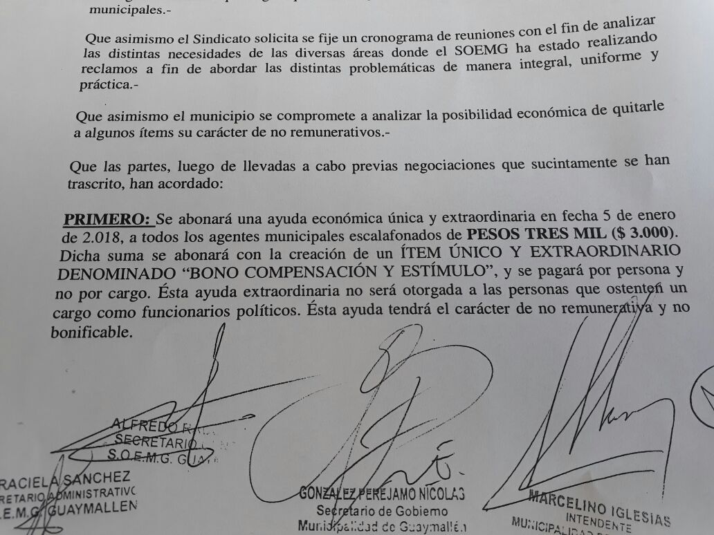 El plan de Cornejo ya ha empezado en los departamentos afines. La Municipalidad de Guaymallén, conducida por Marcelino Iglesias, acaba de firmar un acuerdo de aumento salarial para el año que viene que incluye un "bono compensación y estímulo" de 3.000 pesos.