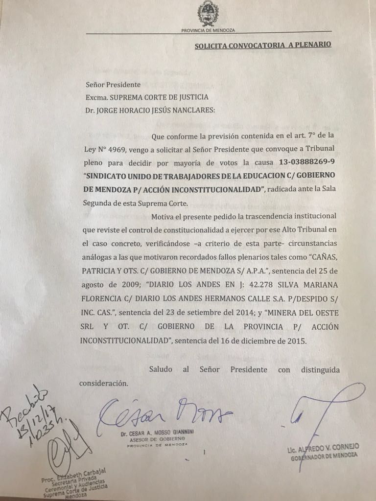 Alfredo Cornejo tardó demasiado tiempo en entender que la causa del Ítem Aula revestía una gravedad institucional digna de que el caso fuera tratado por el pleno de la Corte. Un año y ocho meses lleva la causa en la Justicia. Además, desde hace por lo menos una semana, se venía adelantando cómo saldría el inminente fallo de la Sala 2. La señal era clara: el adicional sería declarado constitucional, con excepciones.